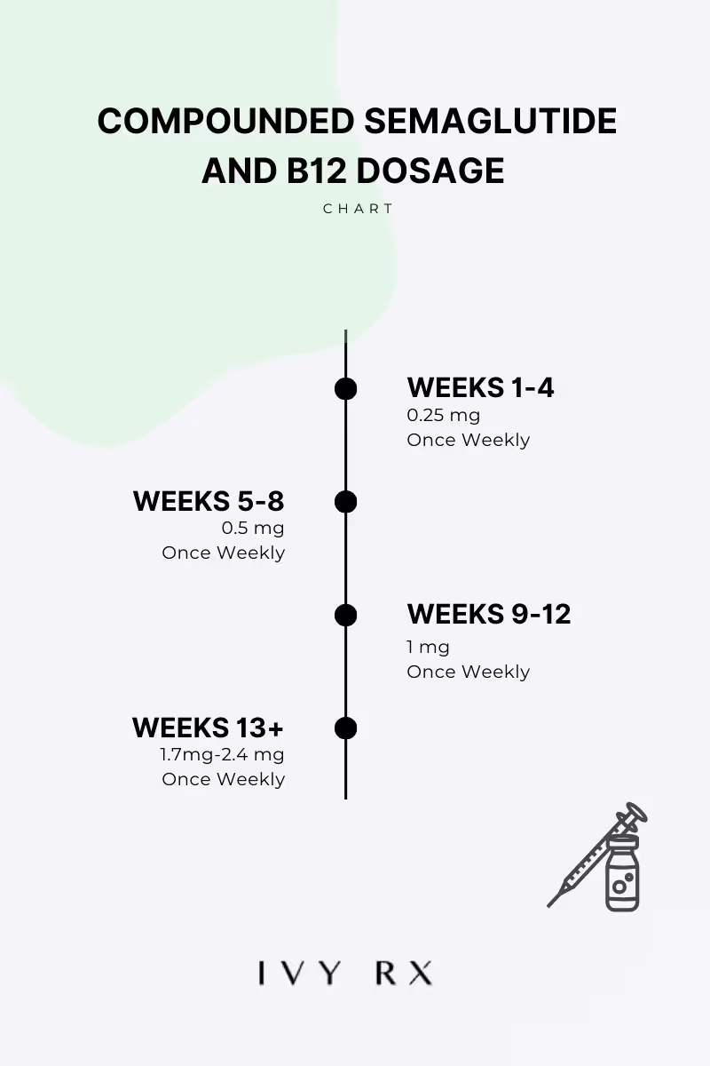 For easy reference, download the compounded semaglutide with B12 dosage chart PDF to track your progress and ensure you're following the right dosage plan (simply right click on the chart and "save image as").