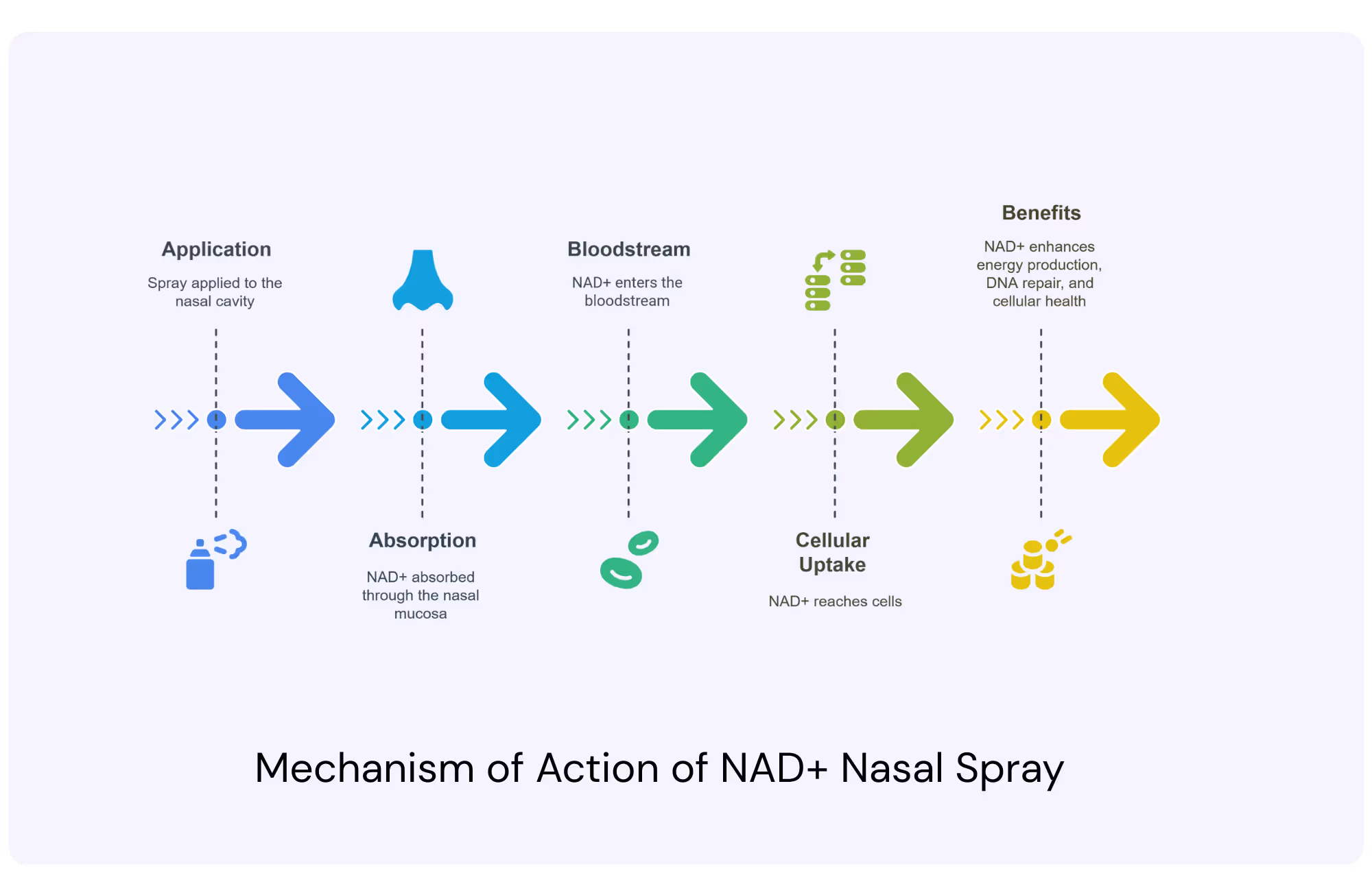 By bypassing the digestive system, NAD+ nasal spray offers fast, efficient absorption — making it ideal for those focused on energy, mental clarity, and healthy aging.