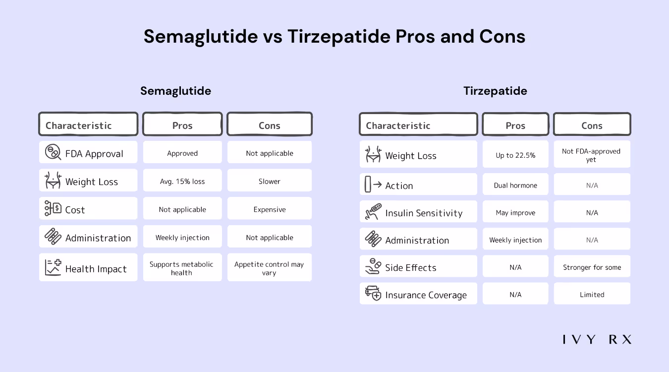 Semaglutide vs Tirzepatide for Weight Loss: Pros, Cons, and Side Effects
