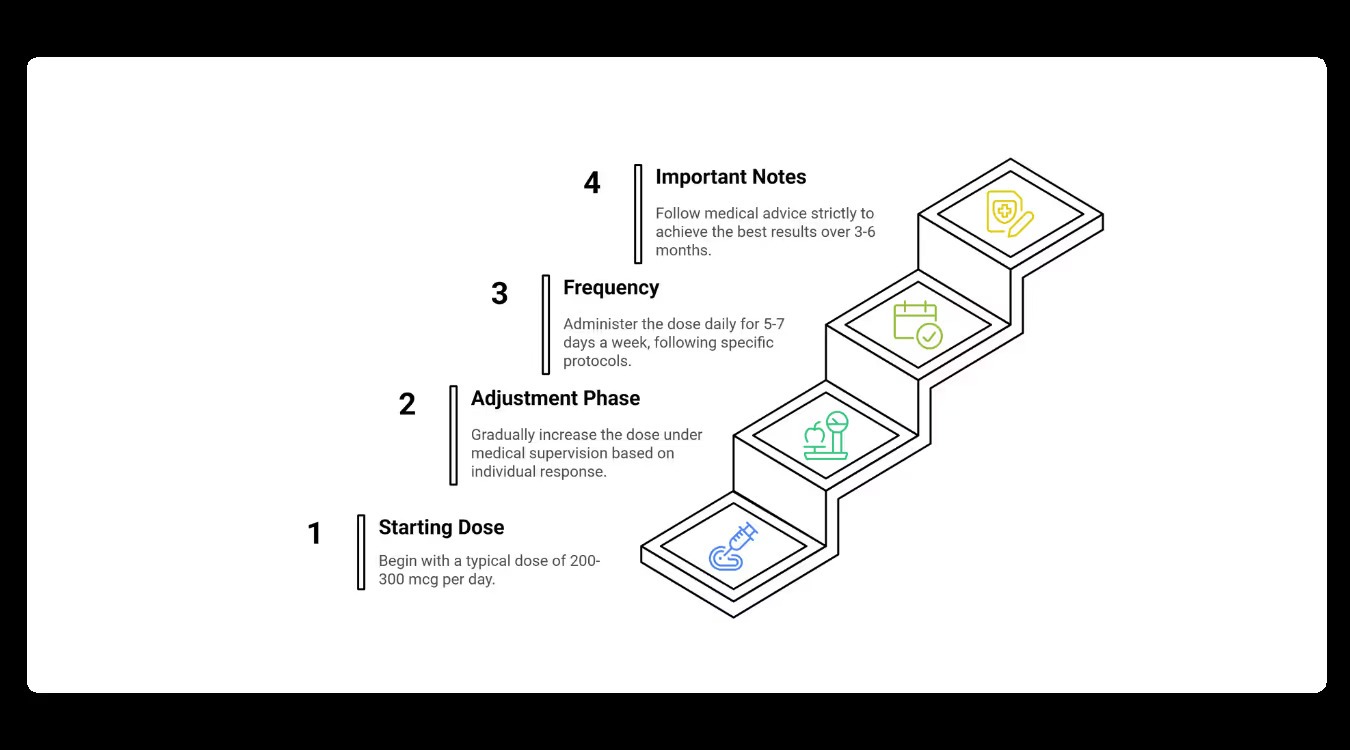 Most protocols start at 100-300 mcg per night. This phase lasts about 2 to 4 weeks. It assesses how your body tolerates the sermorelin therapy before increasing the dose.